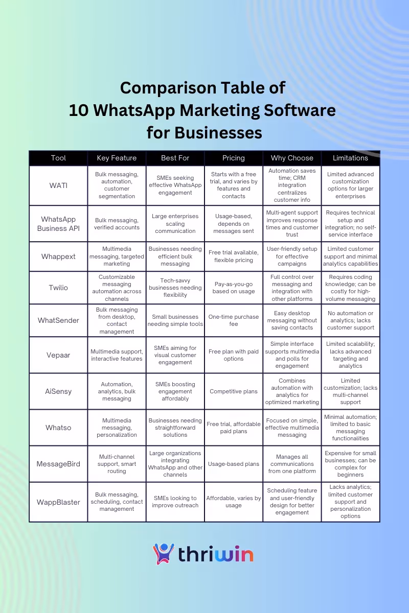 Comparison Table of 10 WhatsApp Marketing Software for Businesses
