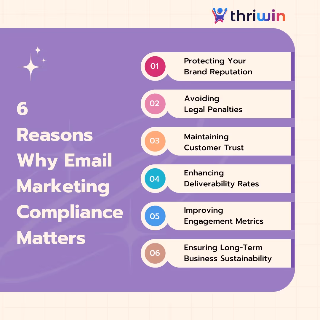 Ensuring compliance with email marketing regulations is vital for businesses to avoid legal issues and foster trust and credibility among subscribers. Below, we explore why compliance is crucial and what its benefits are to your business.