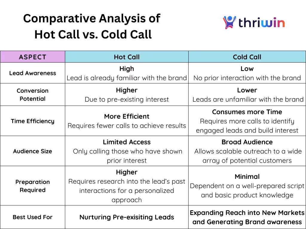 Here's a quick comparison highlighting the key differences between hot and cold calls and how each can impact your sales strategy.