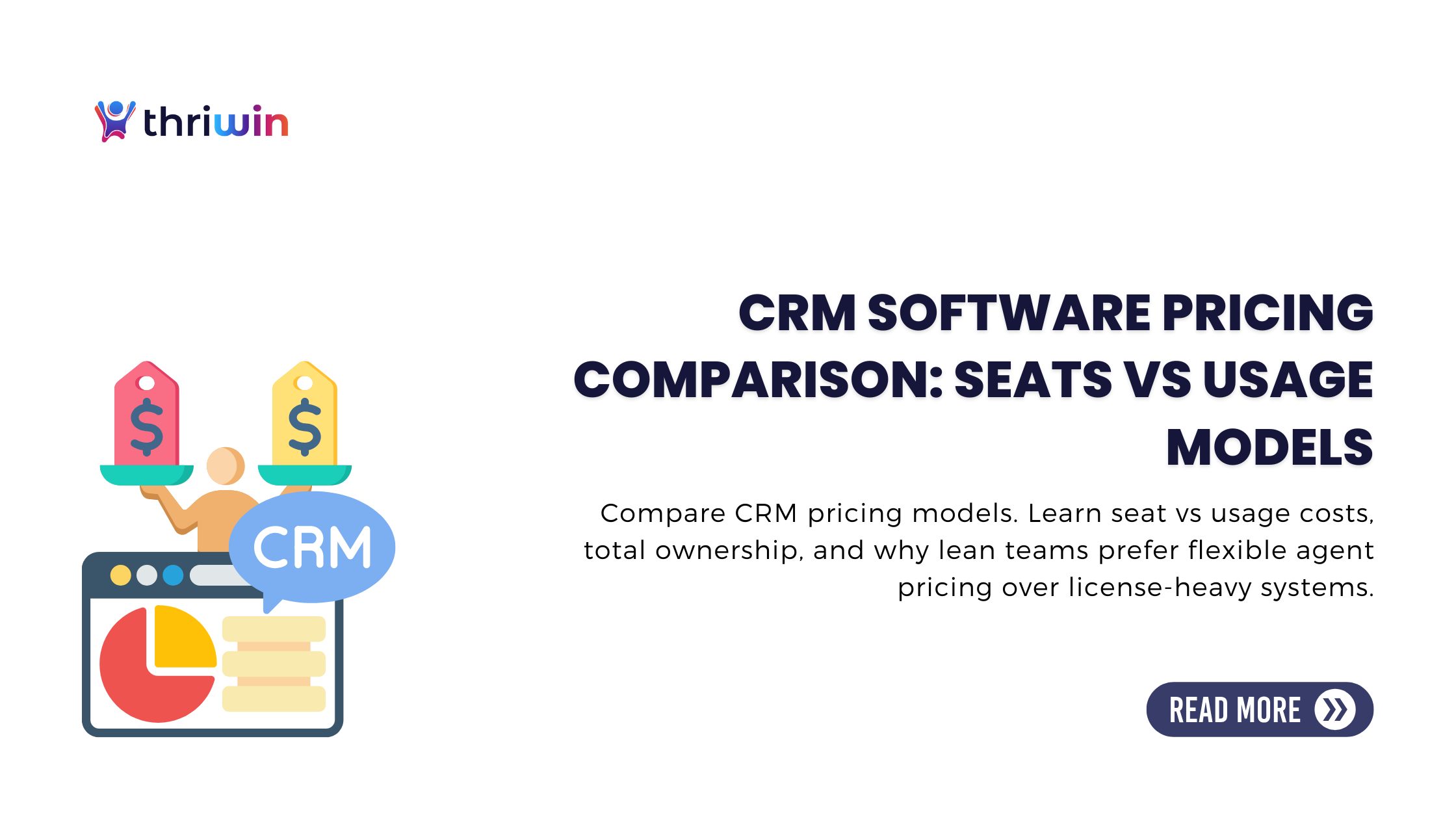 Yes. Thriwin’s CRM utilizes agent pricing, where businesses pay only for the agent's minutes or events. This eliminates license bloat, reduces admin overhead, and offers flexible scaling, making it ideal for lean teams and growing SMBs.