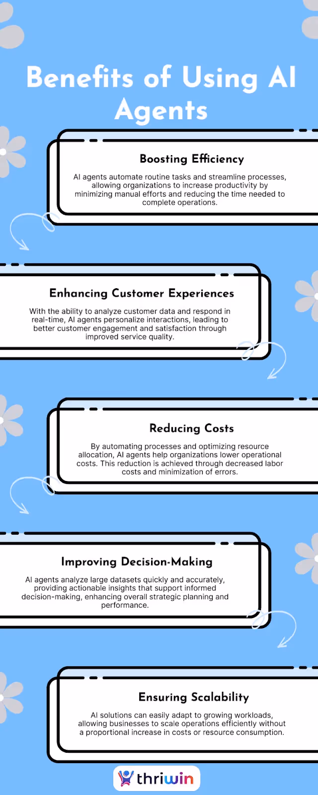 By automating tasks, enhancing customer interactions, and providing valuable insights, AI agents bring a host of benefits that can transform how organizations operate. Let’s dive into some of the key advantages they offer.