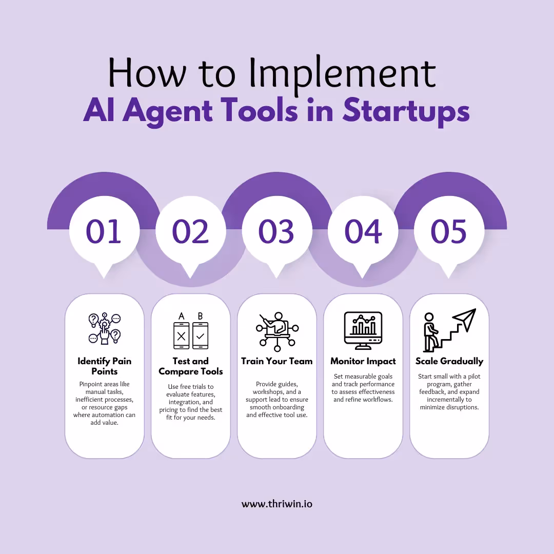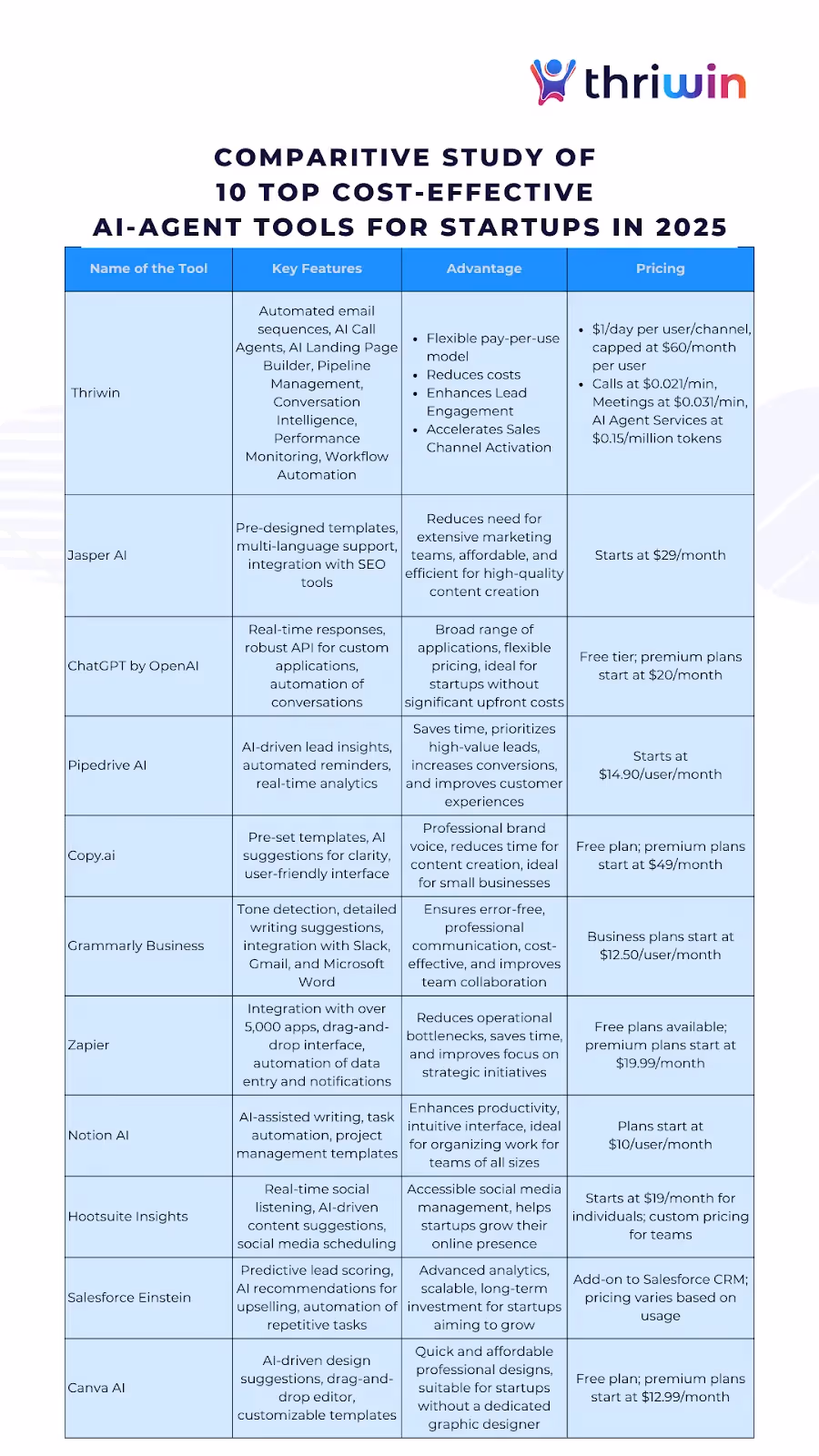 Ultimately, the best tool is the one that aligns with your goals and integrates seamlessly into your operations. With options catering to diverse needs, startups in 2025 can leverage these AI agent tools to boost efficiency, reduce costs, and achieve sustainable growth. Whether you choose a specialized solution or a versatile platform like Thriwin, the future of business automation is undoubtedly AI-driven.