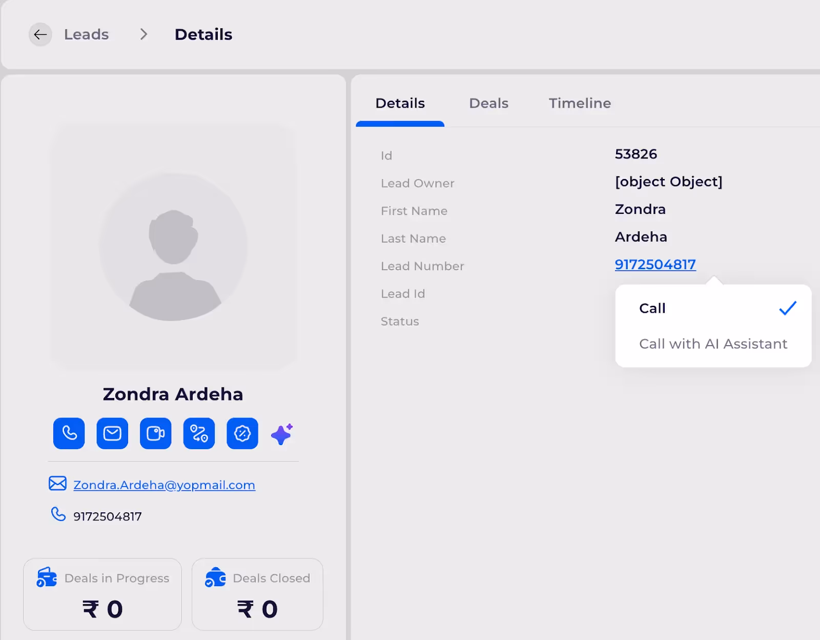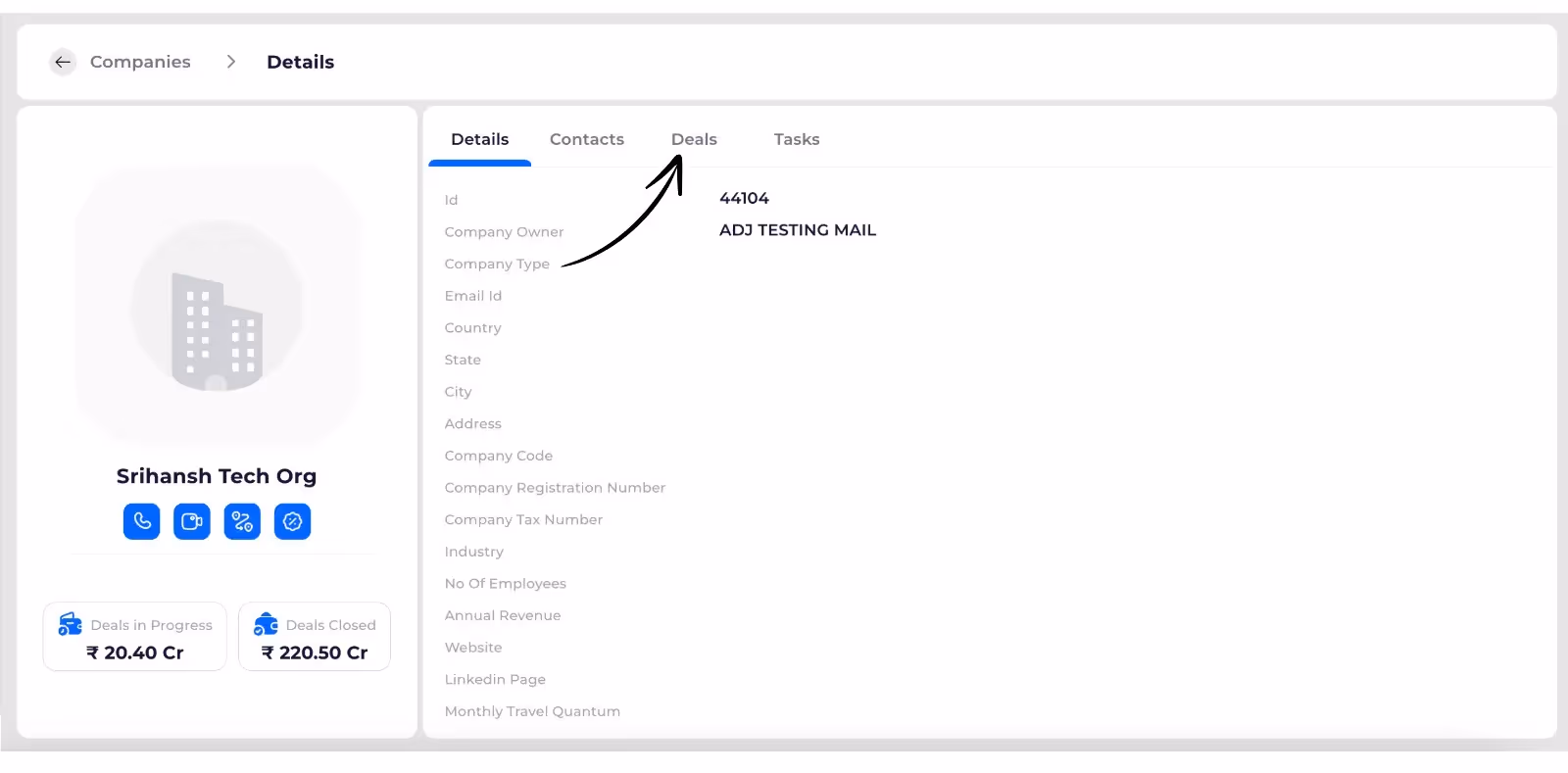 - It gives a quick summary about how many deals were made by the user , how much deal amount and who is leading in the leaderboard with respect to deals won, deals amount won, total no of deals made.