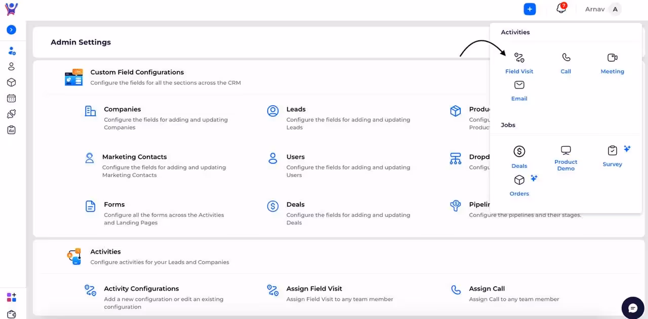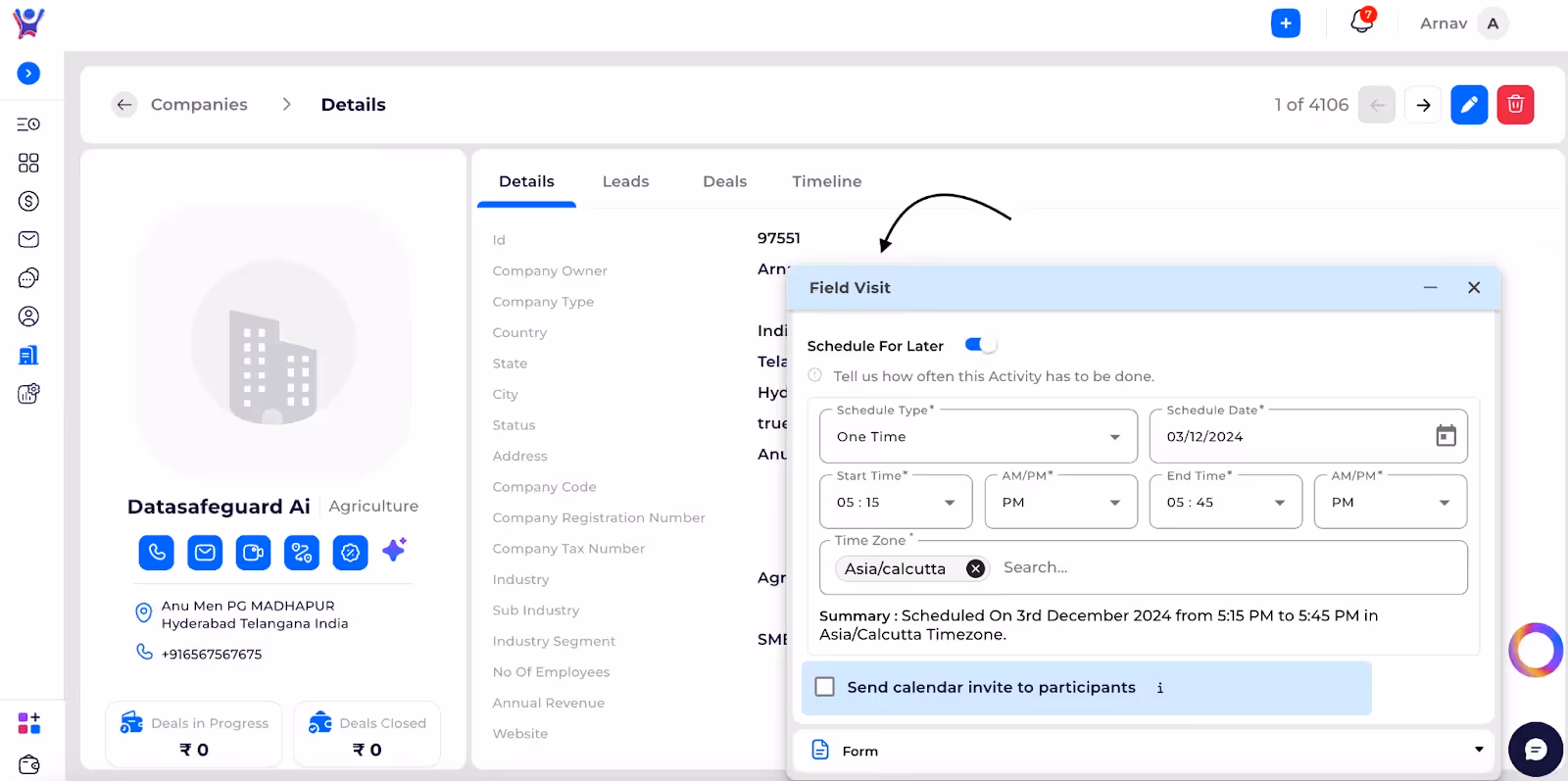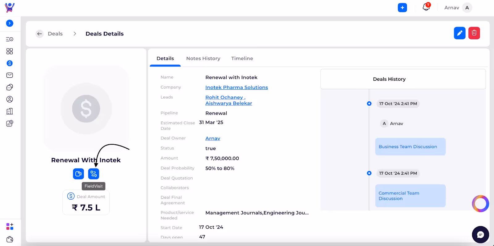 - Which shows the progress or the current status of all the activities taking place like, field visits, calls , meetings , deals , company and contact generation and few of the summarized analysis on deals.
