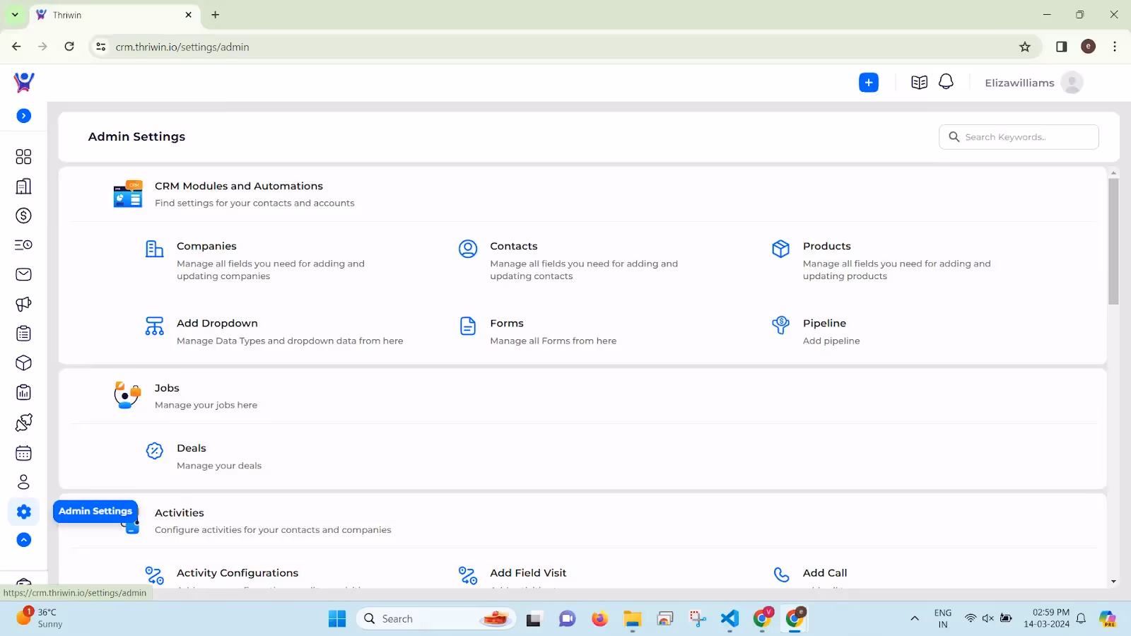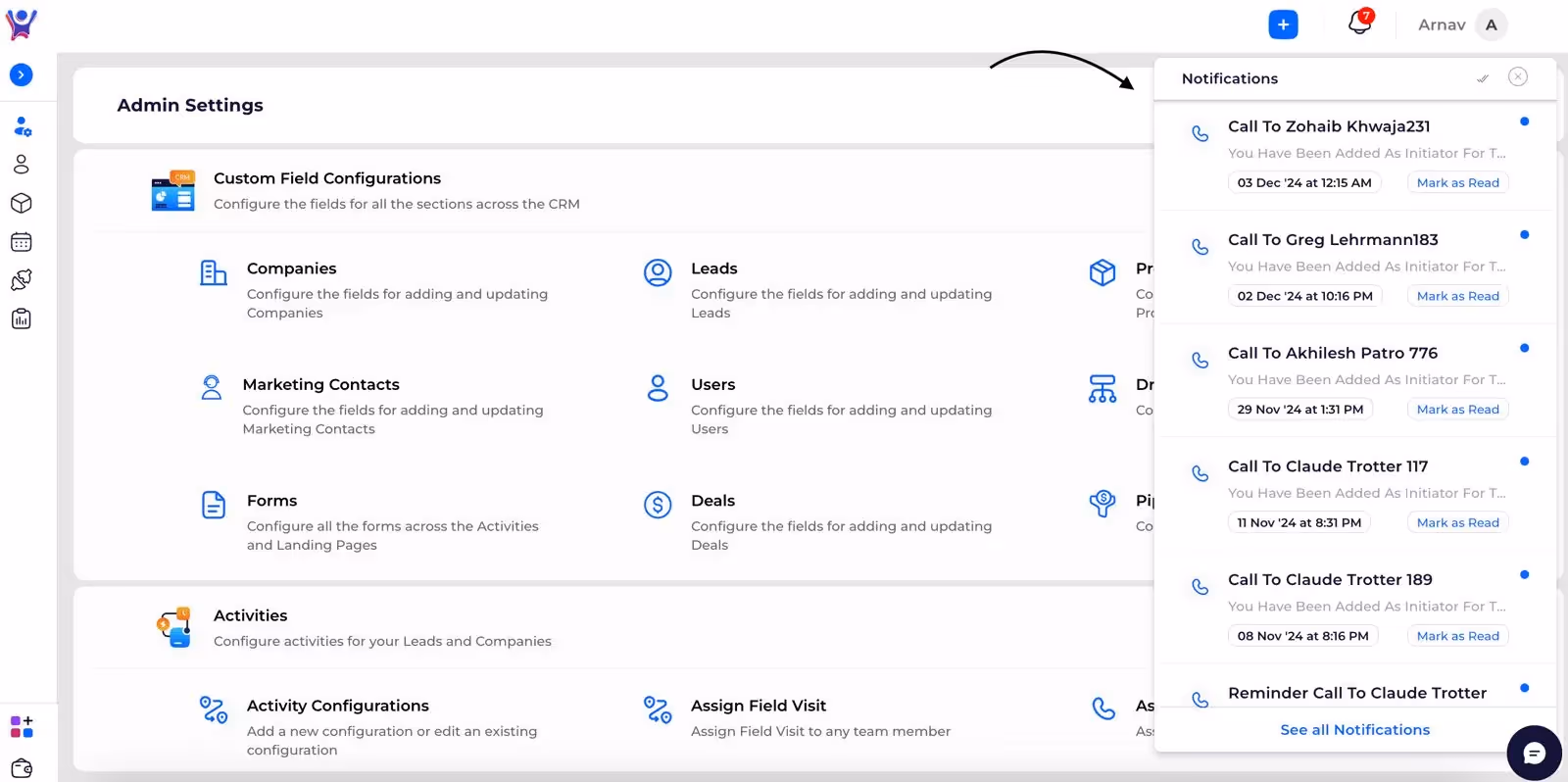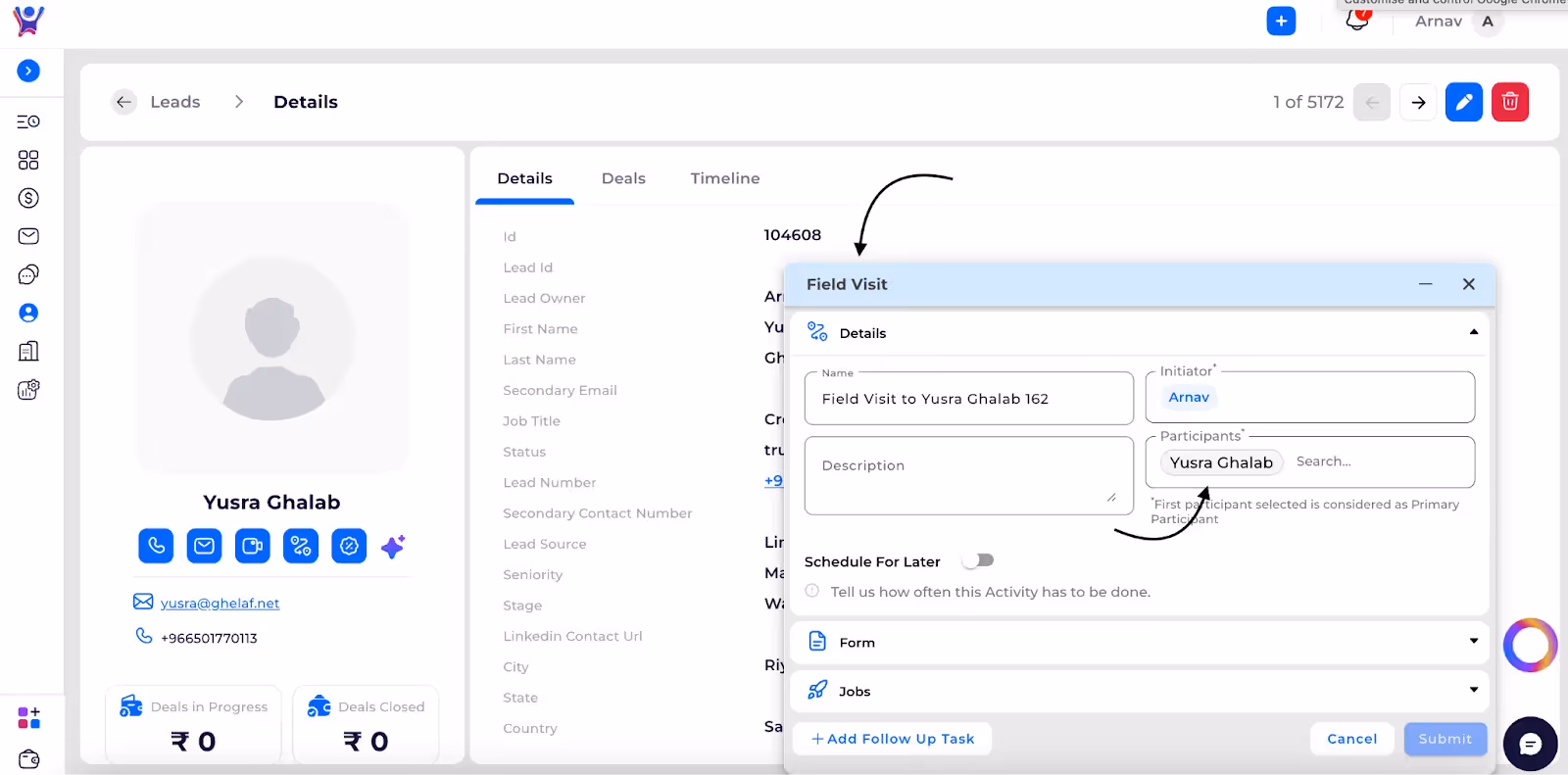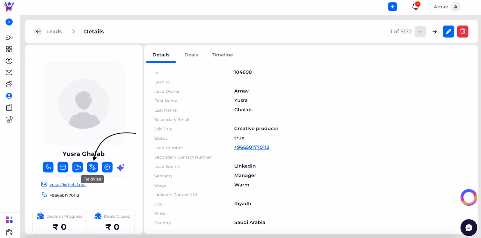 - Which shows the progress or the current status of all the activities taking place like, field visits, calls , meetings , deals , company and contact generation and few of the summarized analysis on deals.
