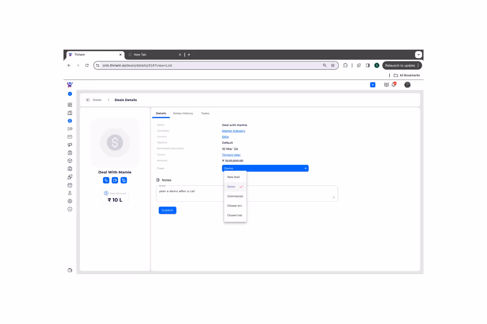 - Predicted to win: according to your history prediction of winning deal is calculated and displayed.