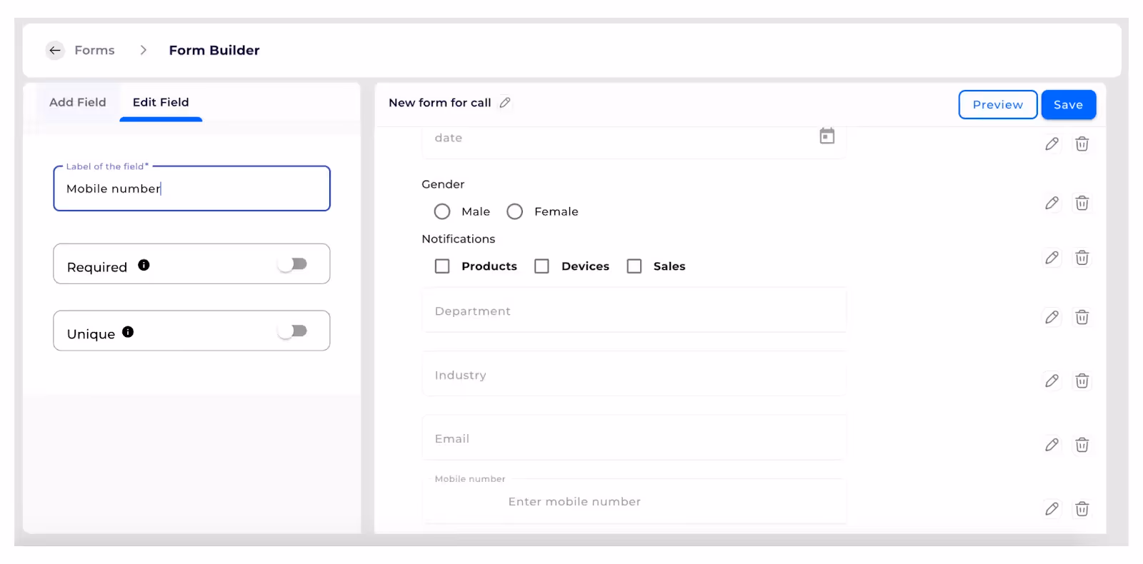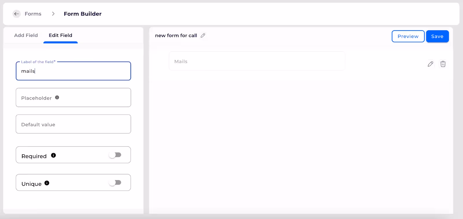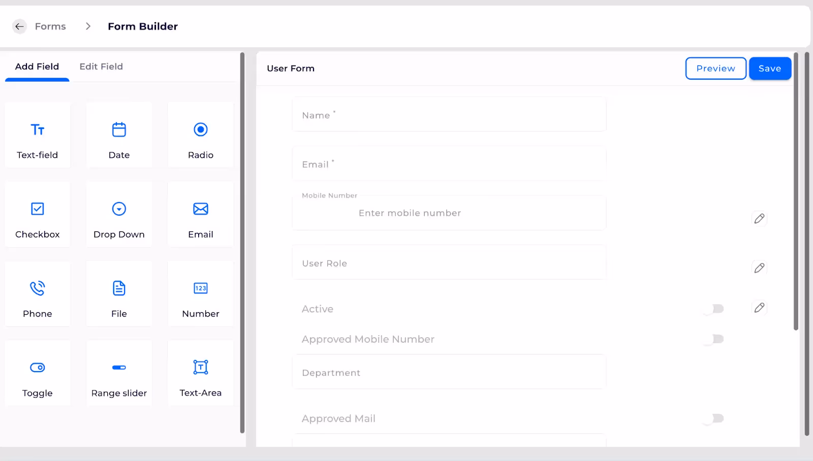 - Text Field: A single-line field used to enter short text, such as names or titles.
