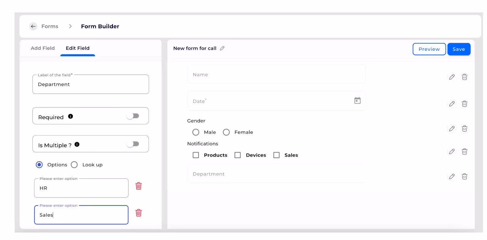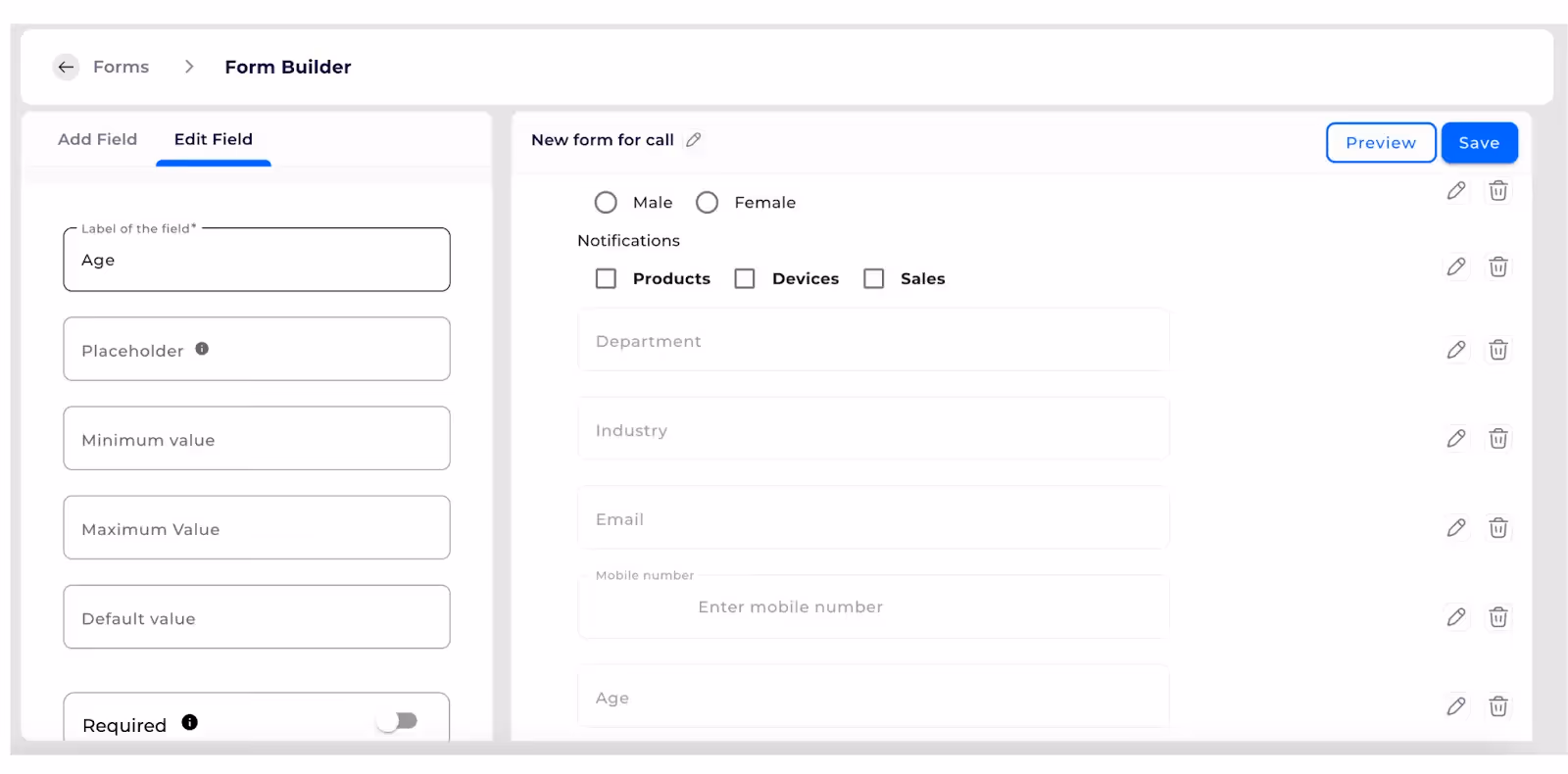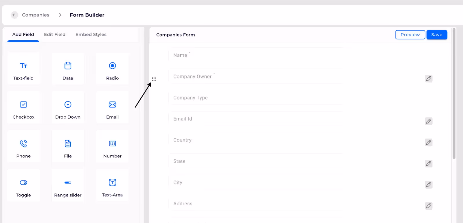 - Text Field: A single-line field used to enter short text, such as names or titles.