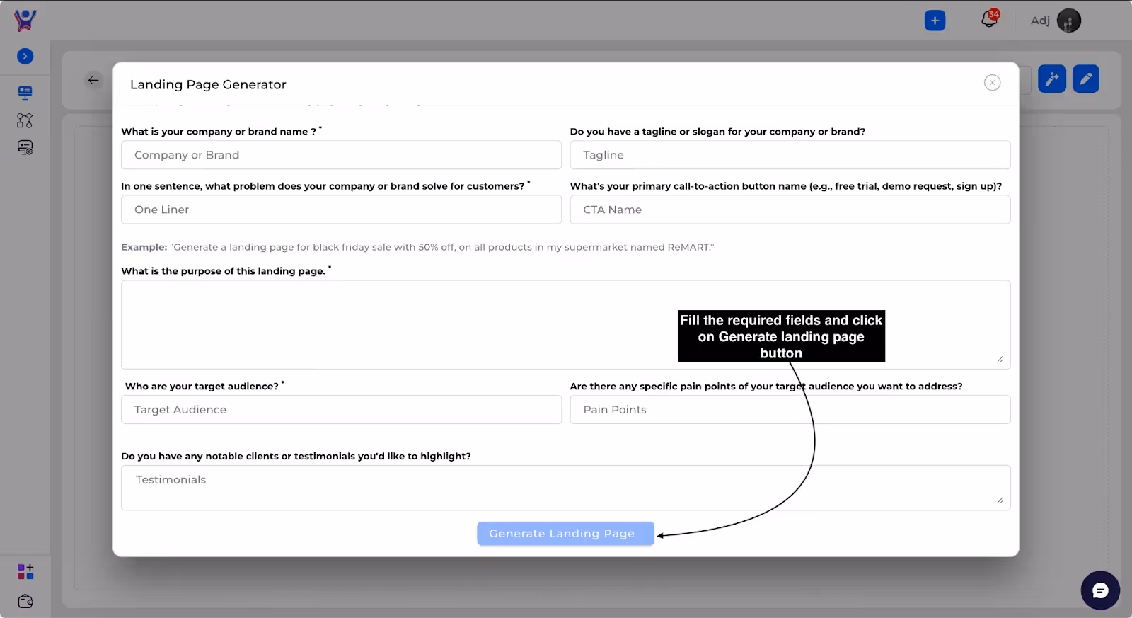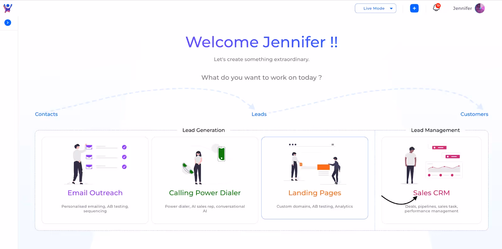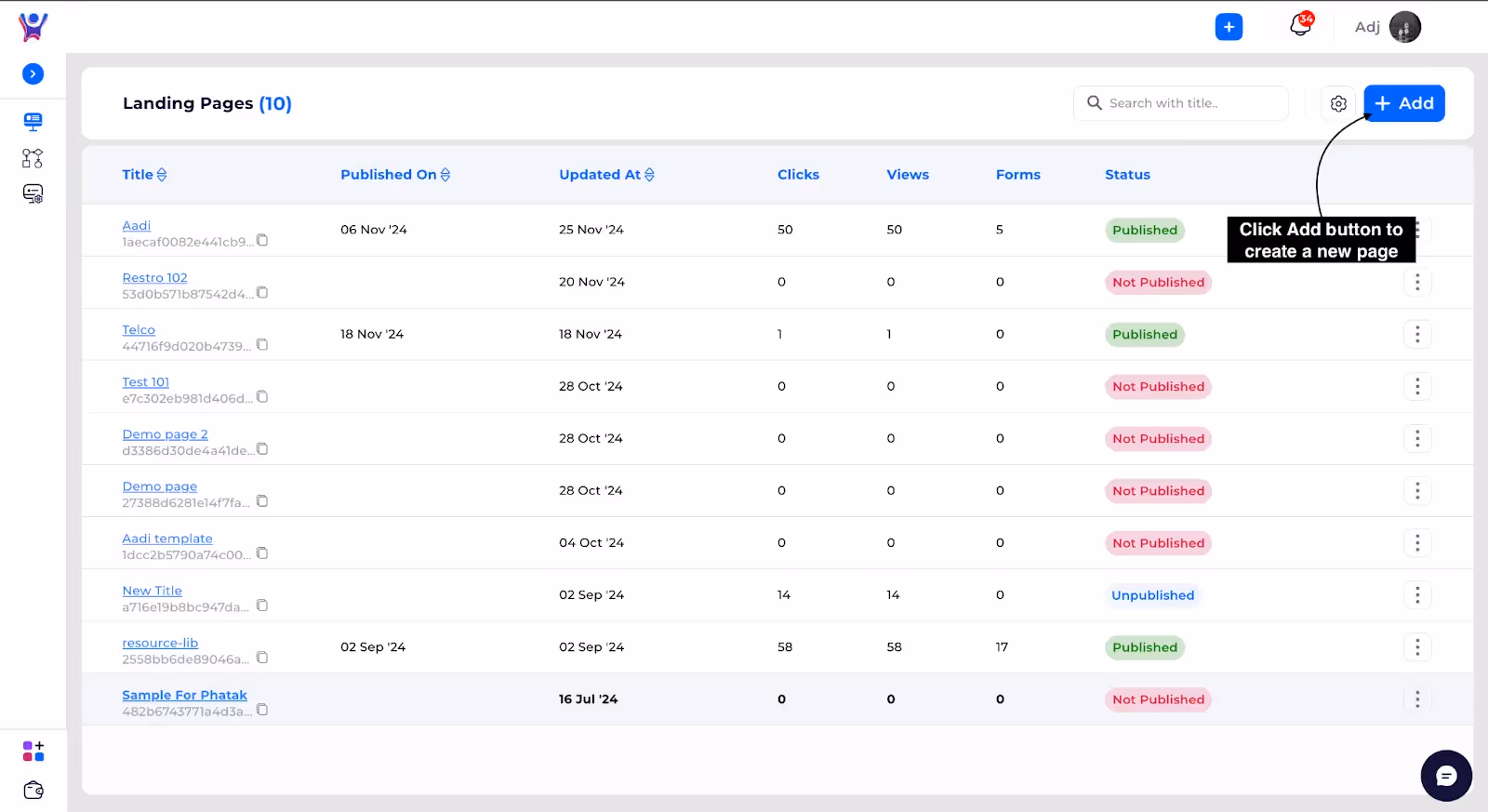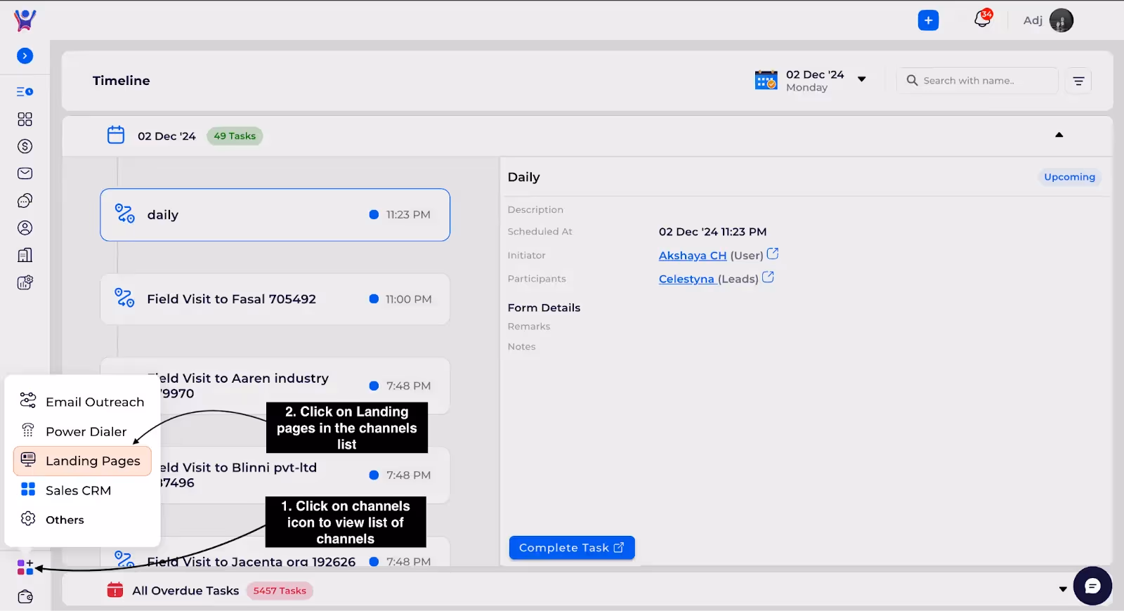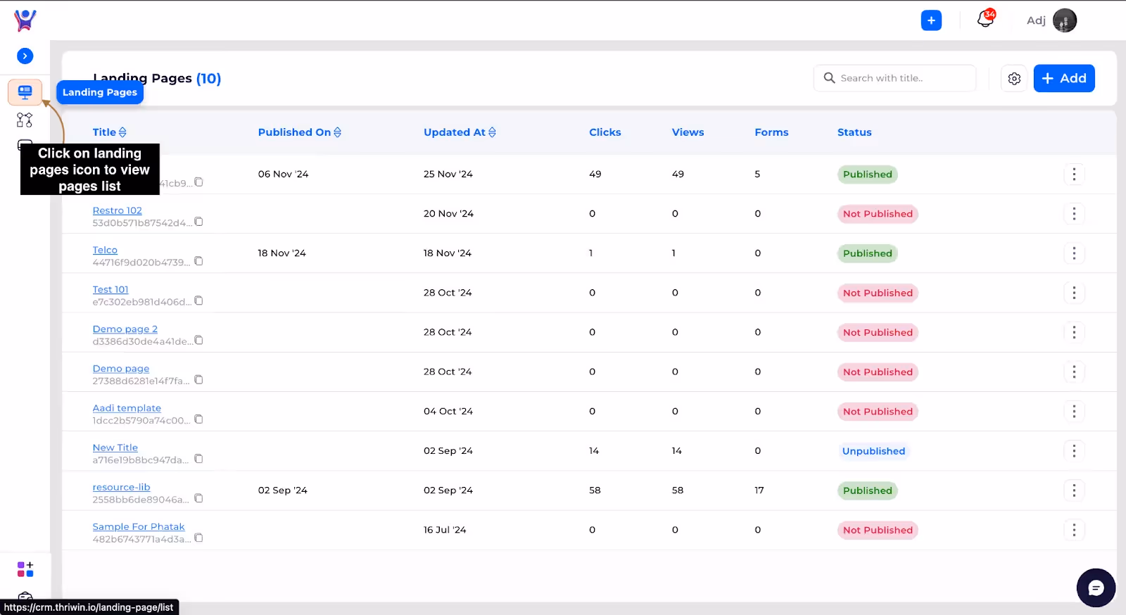 Step 1: Locate the CRM section: Look for the Landing pages module in the navigation menu.