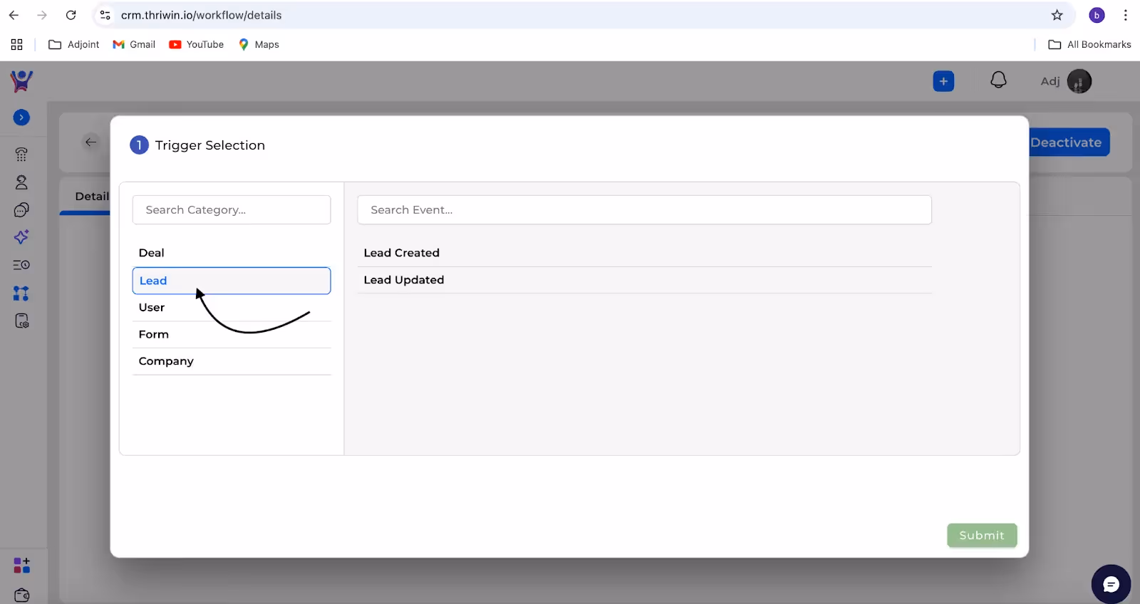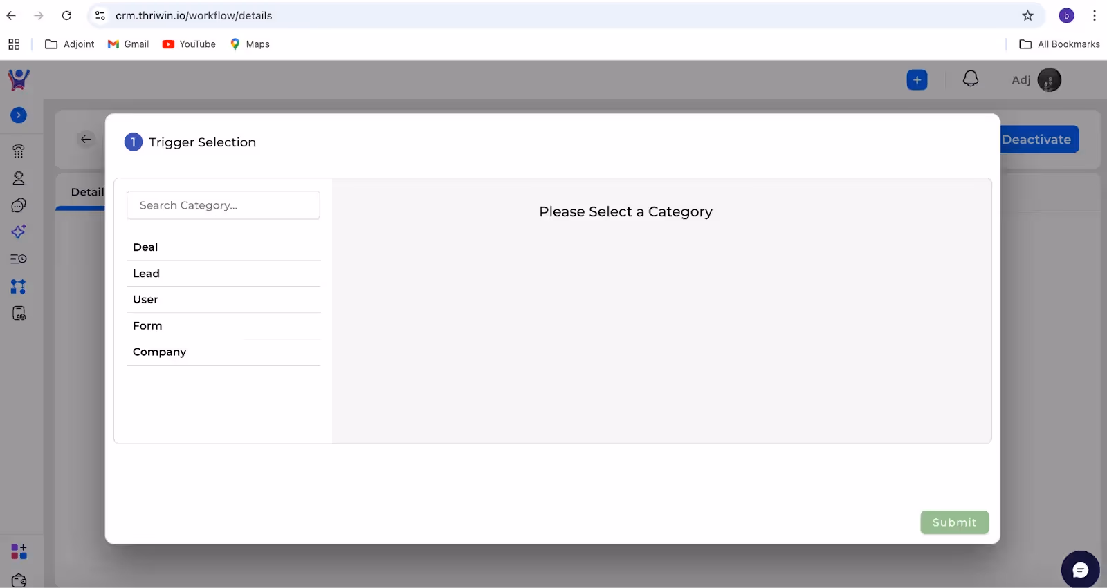 - Click the Submit button in the bottom-right corner of the window to finalize your trigger selection.