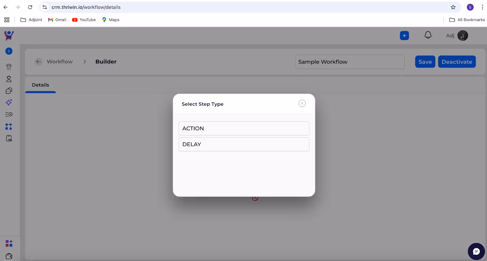 - After configuring a trigger, click on the + (Add Step) icon in the builder interface. You will see a modal with two options